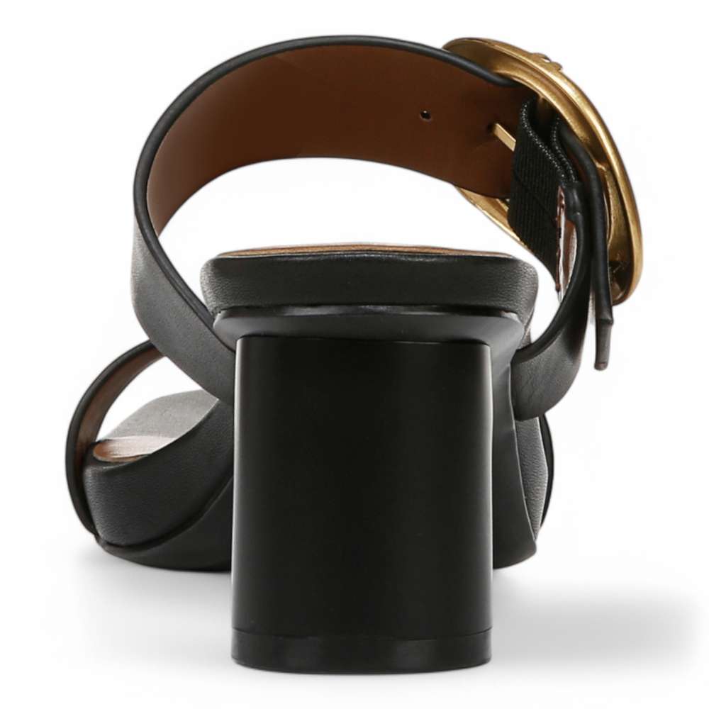 • Heeled sandal with adjustable statement buckle